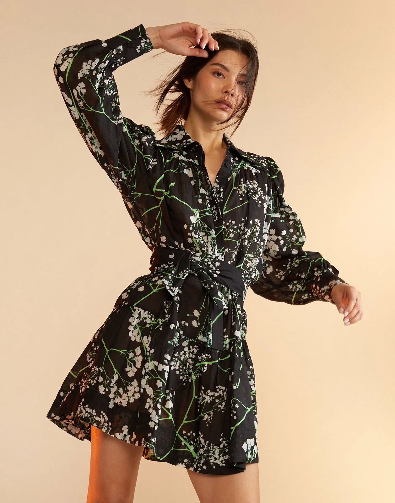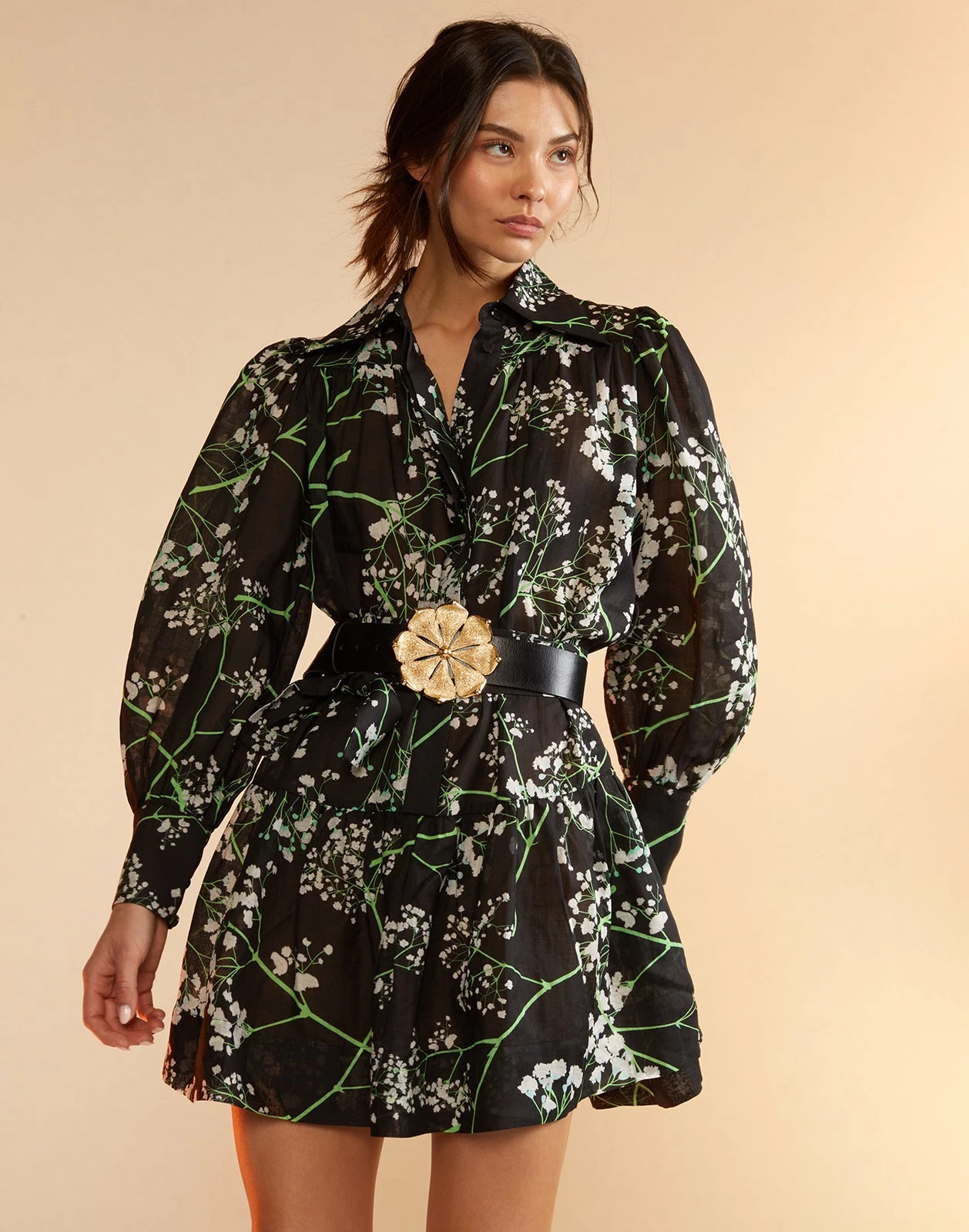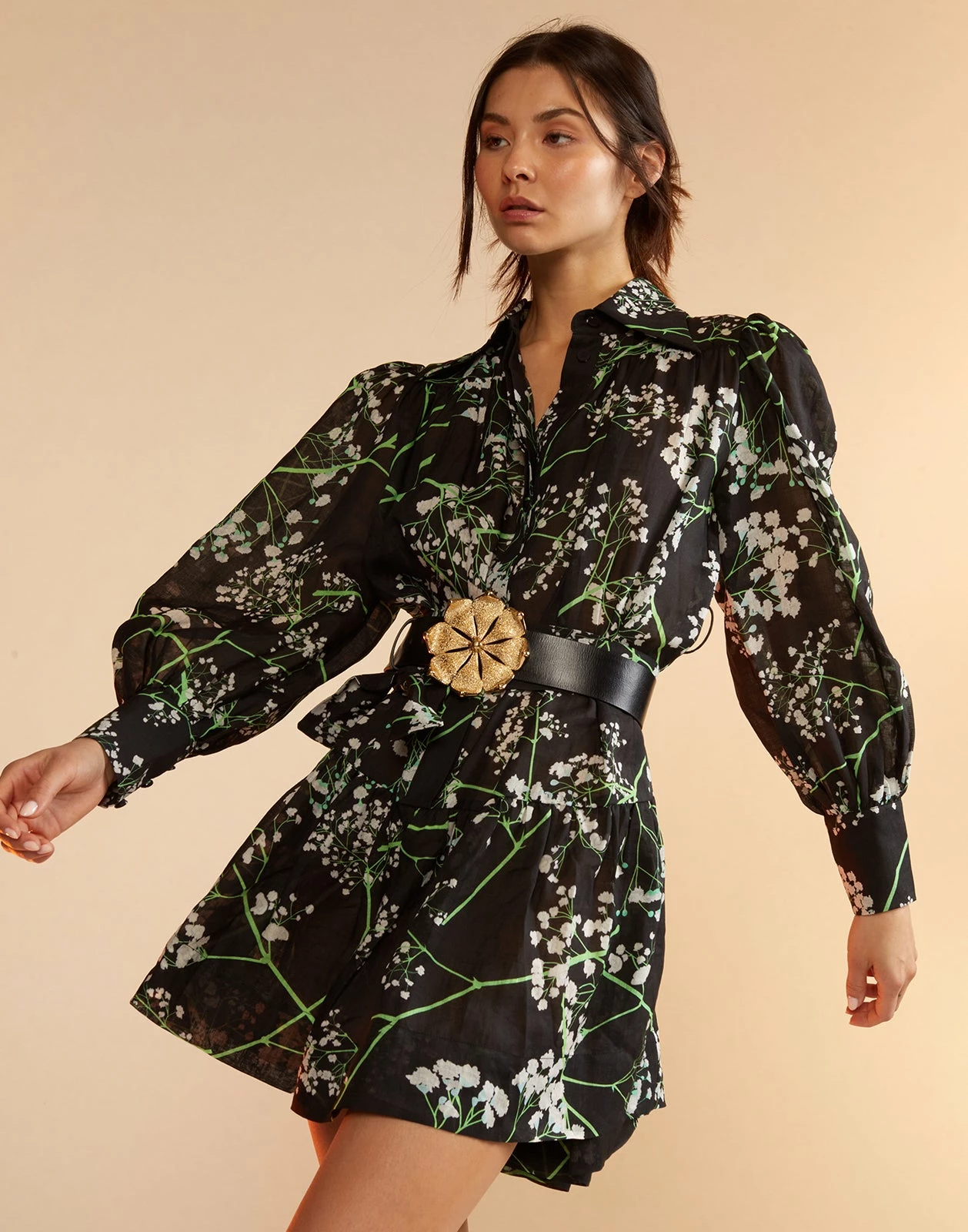 The perfect summer dress! Baby’s breath printed flounce shirt dress.