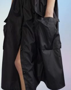 - Front slit with adjustable button closure