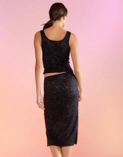 Crystal lace mesh midi skirt.