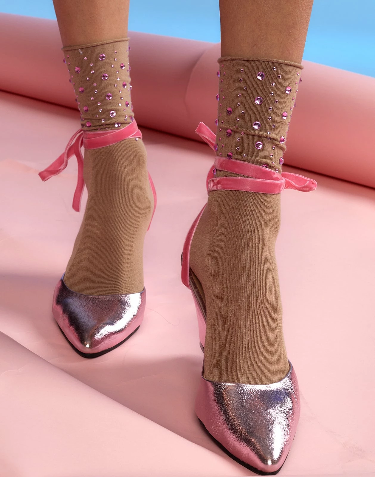 Pink crystal ankle socks. Pair with your favorite sneakers or heels!