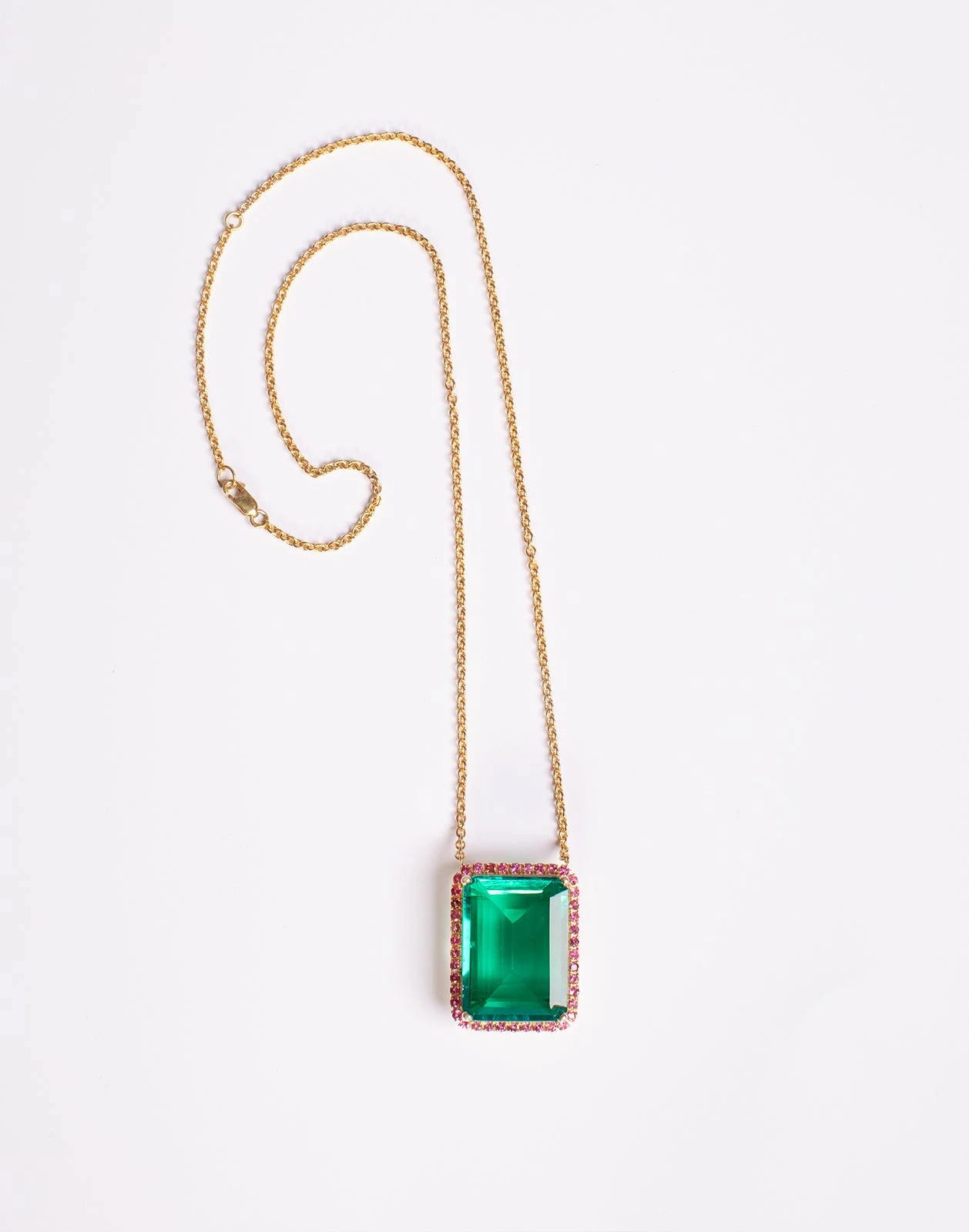 – 20mm x 16mm Emerald cut Green Topaz with 2mm Pink Tourmaline side stonesĀ