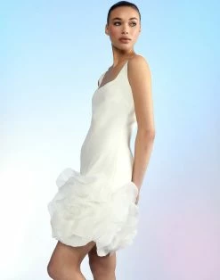 Ponte Knit dress with organza flower appliqué hem.