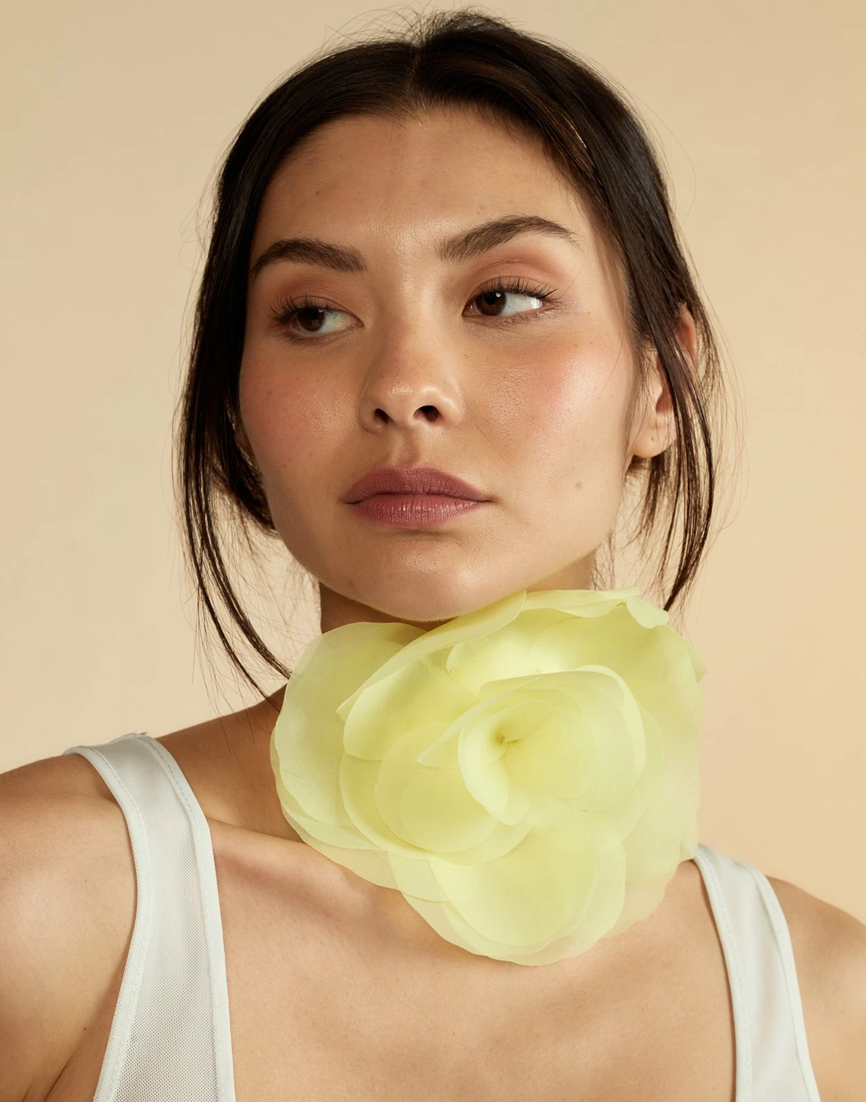 Organza flower can be worn as a belt, hair accessory, or necklace.