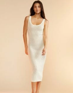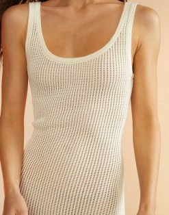 Slip into this open knit crochet. In a semi-sheer fitted silhouette.